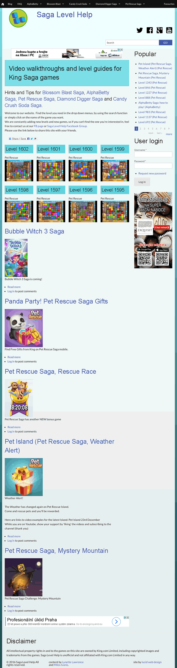 The site is a help site for those who play King games. It concentrates on Diamond Digger Saga and Pet Rescue Saga. It was rebuilt using Codeigniter.